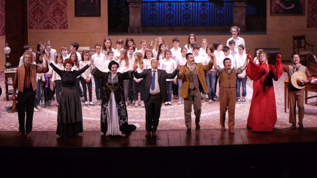 L'idea che ha ispirato “Schicchi e Puccini”, atto unico vincitore del Concorso internazionale di Composizione Opera Nuova 2013 musicato da Sergio Monterisi su testo di Flavio Ambrosini, è creare una composizione affiancabile a Gianni Schicchi, quando non si possa rappresentare il Trittico nella sua interezza. Invece di accostamenti stilisticamente lontani dalla sua peculiare drammaturgia un prologo che racconti quello che potrebbe essere stato il percorso creativo pucciniano. “Un prologo a Schicchi” è infatti l'onesto sottotitolo del lavoro andato in scena in prima assoluta al Municipale nell'ambito di un progetto realizzato in collaborazione con il Conservatorio di musica “G. Nicolini” di Piacenza, di cui molti degli interpreti sono allievi. Nella sua casa di Torre, con la terrazza aperta sulla veduta del lago, Giacomo Puccini, interpretato da un credibile Gezim Myshketa, si trova a confrontarsi con un momento di crisi creativa dopo il successo ottenuto dalla rappresentazione di Butterfly a Brescia. Perché, si domanda, non è mai riuscito a scrivere un'opera ambientata nella sua terra? In cerca di ispirazione sfoglia la Divina Commedia e si imbatte nella storia del “falsificatore” Gianni Schicchi, sprofondato all'inferno per l'imbroglio perpetrato ai danni della famiglia Donati. Il tema accende subito la fantasia di Puccini che, da buon toscano, appezza la burla “anche se fa un po' male” e non condivide la condanna inflitta al suo ideatore dal Sommo Poeta. Scandalizzato dalle sue considerazioni si materializza, trasportato da un'ironica e improbabile nuvoletta, Dante Alighieri in persona che ammonisce il musicista a rispettare il suo testo, pena l'essere tormentato da una donna feroce e furibonda che gli rovinerà la vita con la sua gelosia. Puccini non si cura della maledizione dantesca, infatti una donna così nella sua vita esiste già: è sua moglie Elvira. Perennemente a caccia delle prove dei veri o presunti tradimenti del marito Elvira diventa sempre più lamentosa e querula nel duetto, un po' troppo lungo, in cui Giacomo cerca di tranquillizzarla con l'aiuto del cameriere Enore che, pur facendo da spalla al Maestro, si diverte a fomentare le ansie della donna. Le necessità artistiche del compositore e quelle più pragmatiche della moglie trovano alla fine un faticoso incontro: Giacomo promette di coinvolgere Elvira nella messa in scena del suo nuovo lavoro per fare in modo che si senta più partecipe della sua vita. Il tentativo di utilizzare la servitù per impersonare i membri della famiglia Donati sembra fallire miseramente dopo le prime audizioni: la cameriera stona clamorosamente il pretenzioso “Tacea la notte placida” in cui si era esibita mentre un mezzadro accenna maldestramente l'Inno di Mameli. Non ci siamo! Il musicista invoca allora l'aiuto del “cielo teatrale”, che - e come non potrebbe trattandosi di un suo prediletto - inonda, in un coro angelico, i bifolchi maremmani con una pioggia di polvere d'oro. E tutti si scoprono improvvisamente capaci di cantare come si deve le belle melodie pucciniane: “Mi chiamano Mimì”, “Ah Manon mi tradisce il tuo folle pensiero”, “Vecchia zimarra, senti”.. E anche Elvira, finalmente convinta, intona lo struggente “Un bel dì vedremo”. Trovati così Nella, Gherardo, Simone e Lauretta, Schicchi lo abbiamo già, è Giacomo in persona, la “Terrena Commedia” di Puccini può incominciare. L'idea, in realtà non nuovissima, di far nascere e ambientare un'opera in casa del suo compositore è sviluppata con tocchi di ironia dal regista Flavio Ambrosini che ha saputo alleggerire, con indovinate scelte teatrali, il suo testo a tratti un po' ridondante. La musica di Sergio Monterisi commenta il declamato sviluppando temi che risultano immediatamente famigliari in quanto spesso derivati da citazioni pucciniane. Si avvertono riferimenti, per altro indovinatissimi, alla scrittura di Bohème, Turandot, Tabarro e, naturalmente, alla musica che accompagna, in Gianni Schicchi, gli ipocriti lamenti funebri dei Donati al capezzale del morto. Leggendo il libretto si apprende che, come nel caso di un vero e proprio prologo, l'opera successiva dovrebbe iniziare subito dopo, con la costruzione della camera di Buoso a vista, utilizzando le suppellettili di casa Puccini. Per problemi probabilmente legati al cambio dei costumi, curati da Carlo Centolavigna, non è stato così e la mezz'ora circa di intervallo intercorsa tra i due lavori ha tolto un po' di rilevanza al primo, che è stato accolto dal pubblico con simpatia e generosi applausi. Gezim Myshketa, passato dal ruolo di Giacomo Puccini a quello di Puccini che interpreta Schicchi, è molto bravo a ricordarsi di rimanere, appunto, Puccini. La recitazione è sempre contegnosa come si conviene ad un signore del primo novecento prestato al palcoscenico e costituisce un importante elemento di continuità tra i due momenti teatrali. Il timbro vocale importante, morbido e pieno, il fraseggio perfettamente scandito e ben accentato del Prologo, mantengono queste caratteristiche anche nello Schicchi, che viene arricchito da efficaci cambi dinamici e di colore. Maria Rosaria Lopalco che era stata un'ossessiva e lamentosa Elvira nella prima parte, illumina, come sempre succede quando il soprano canta bene, la buia stanza di Buoso con un bellissimo e molto applaudito “O mio babbino caro”. Rinuccio, alias Enore domestico di casa Puccini, è il tenore Gabriele Mangione, che ha una bella voce ma dovrebbe controllarla di più, cercando, almeno nei momenti “amorosi”, colori alternativi al “forte”. Zita è una giustamente ruvida Francesca Ascioti e il vecchio Simone è interpretato da Federico Benetti che nel Prologo era il mezzadro stonato di “Fratelli d'Italia” e poi, graziato dagli angeli, il basso di “Vecchia Zimarra”. Davide Giangregorio, il bravo ed espressivo Dante Alighieri del Prologo, è un efficace e molto presente Betto di Signa. Molto div